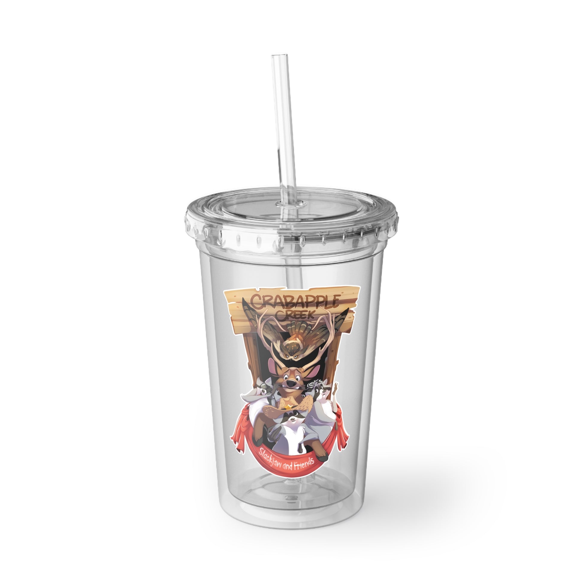 ip a little sunshine from CrabApple Creek with this 16oz acrylic cup—perfect for cold drinks, long talks, and porch-side moments. Featuring the SlackJaw & Friends design, it’s a daily reminder of kindness, laughter, and the simple joys that inspired the stories of the Creek.